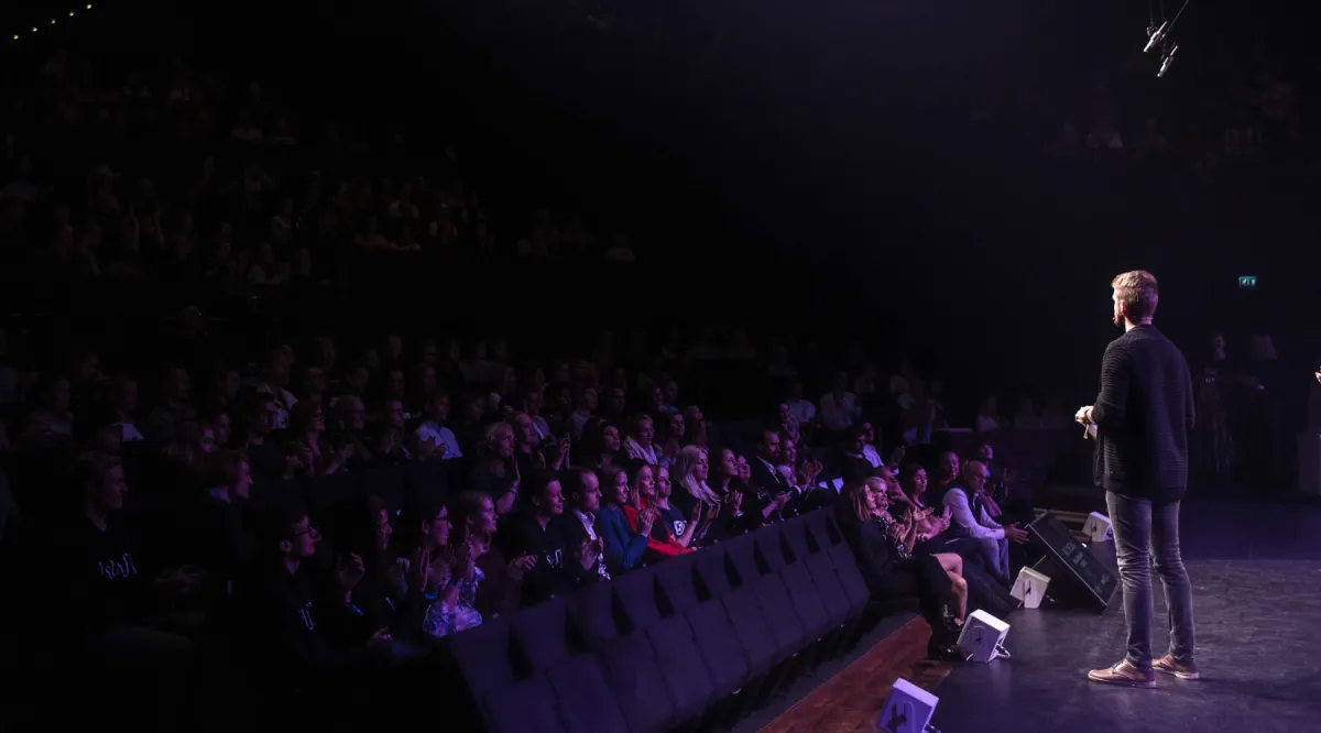 Lopulta aloin kouluttaa esiintymistä. Pian koordinoin Suomen suurinta puhujaohjelmaa. Juonsin Slush 2018 livestreamin 30 000 katsojalle ja puhuin liikutuksen vallassa päätössanat täyteen ahdetun Musiikkitalon 1200-päiselle yleisölle.